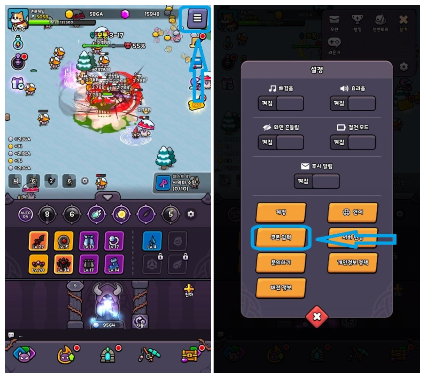 📢 마왕 슬라임 키우기 게임 내 쿠폰 입력방법 안내