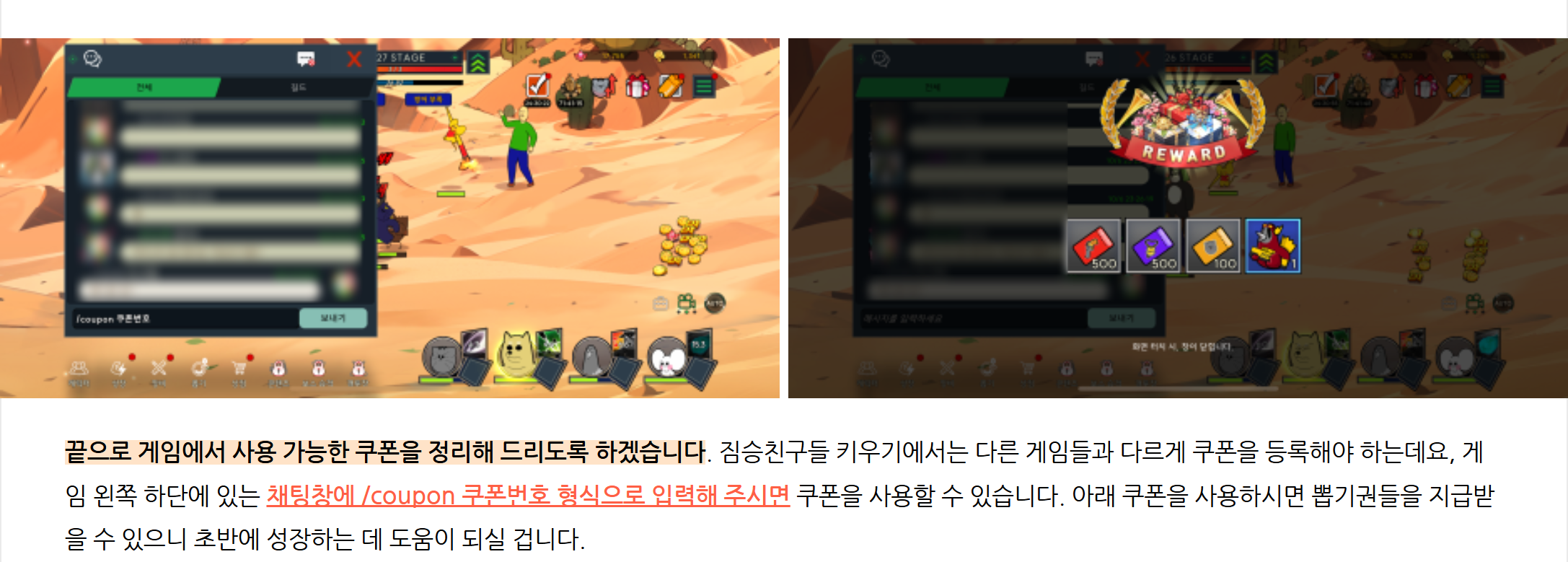 📢 짐승친구들 키우기 쿠폰 입력방법 안내