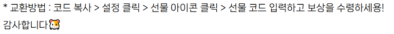 💡아래의 선물 코드를 👆클릭 하시면, 복사/붙여넣기를 할 수 있습니다.